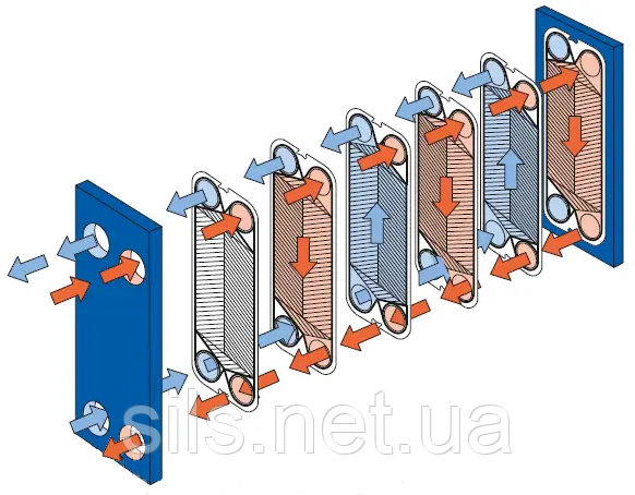 Пластинчасті теплообмінники передають теплову енергію з одного боку в інший, не змішуючи два продукти з двох сторін. Тому є можливість встановити їх між тепловим насосом і технологічним контуром, наприклад, розділити два контури.