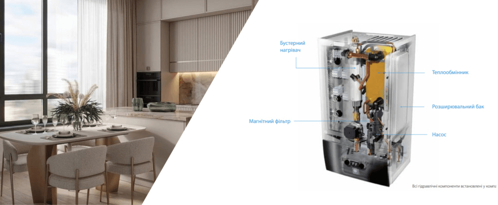 Адаптивна автоматика: Вбудована погодозалежна автоматика знижує енерговитрати і забезпечує точне регулювання температури відповідно до погодних умов.