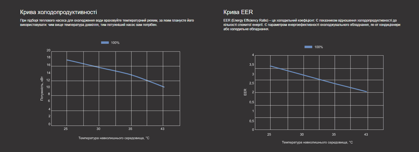 Надійність роботи гарантує компресор Mitsubishi, який ефективно функціонує при температурі зовнішнього повітря від +15 до +43 °C. Система підігріву картера та піддона запобігає гідроударам і обмерзанню при низьких температурах. Діапазон нагріву води — від +9 до +40 °C, охолодження — до +8 °C, що робить модель придатною для цілорічного використання.
