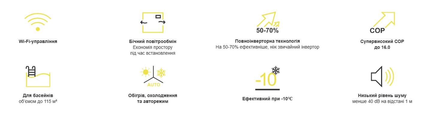 ПРИЗНАЧЕННЯ: Тепловий насос Aquajoy Side Flow для басейну