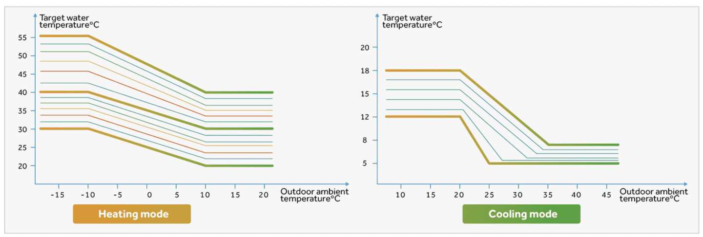 Функція “Climate Curves” дозволяє автоматично регулювати температуру у зонах 1 та 2 залежно від температури навколишнього середовища. Користувач може встановити персоналізовану кліматичну криву, що підвищує комфорт та зменшує витрати електроенергії.