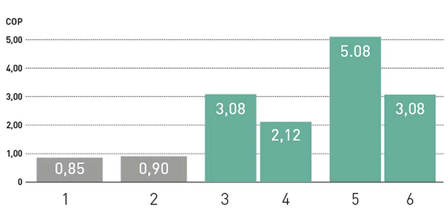 • Точне налаштування холодильного циклу дозволяє підтримувати номінальну продуктивність без резервного нагріву.