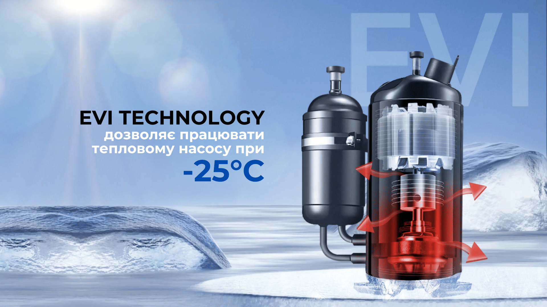 Технологія EVI (Enhanced Vapor Injection) — це інженерне рішення, яке дозволяє повітряним тепловим насосам ефективно працювати навіть при дуже низьких температурах — до -25°C і нижче. Серцем цієї технології є два ключові компоненти: додатковий внутрішній теплообмінник-економайзер і байпас-клапан, які разом створюють проміжну точку впорскування пари в компресор. Цей процес значно покращує продуктивність і стабільність системи в екстремальних умовах.