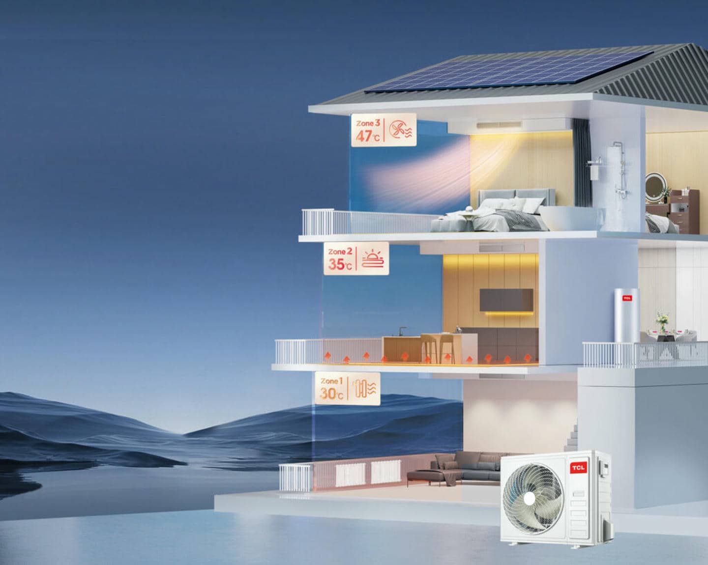 ПРИЗНАЧЕННЯ: Тепловий насос TCL Tri-thermal для опалення, охолодження та ГВП