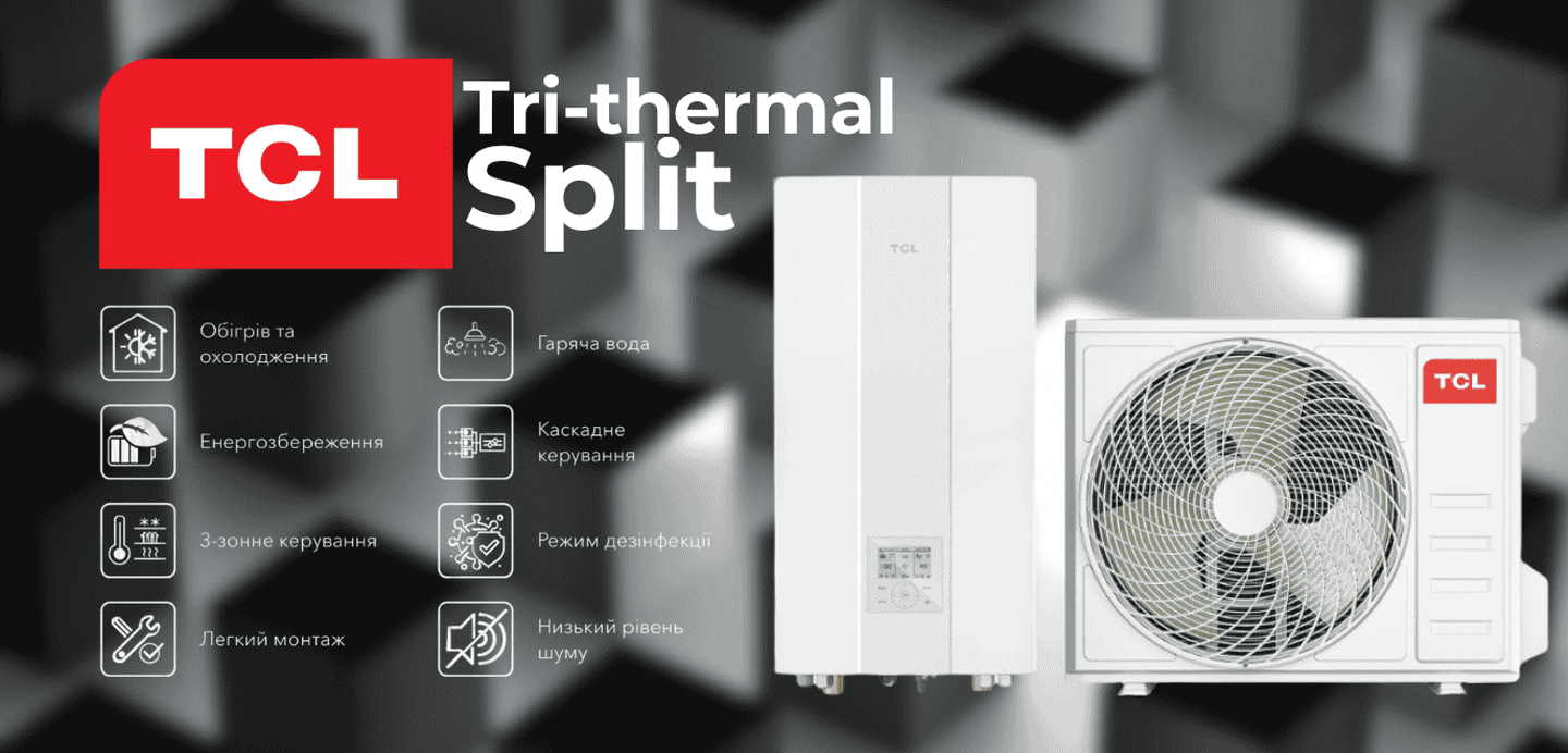ПРИЗНАЧЕННЯ: Тепловий насос TCL Tri-thermal для опалення, охолодження та ГВП