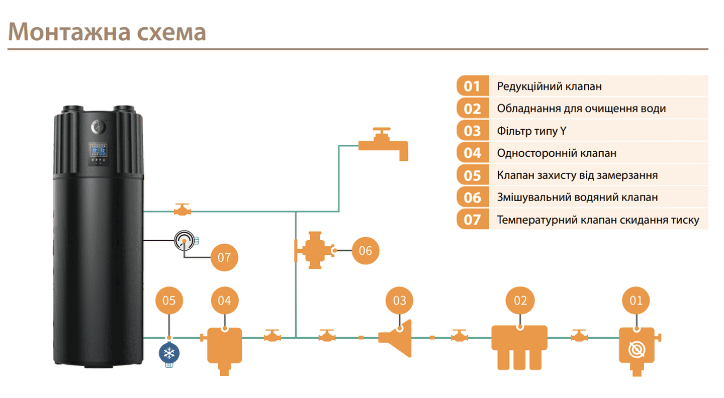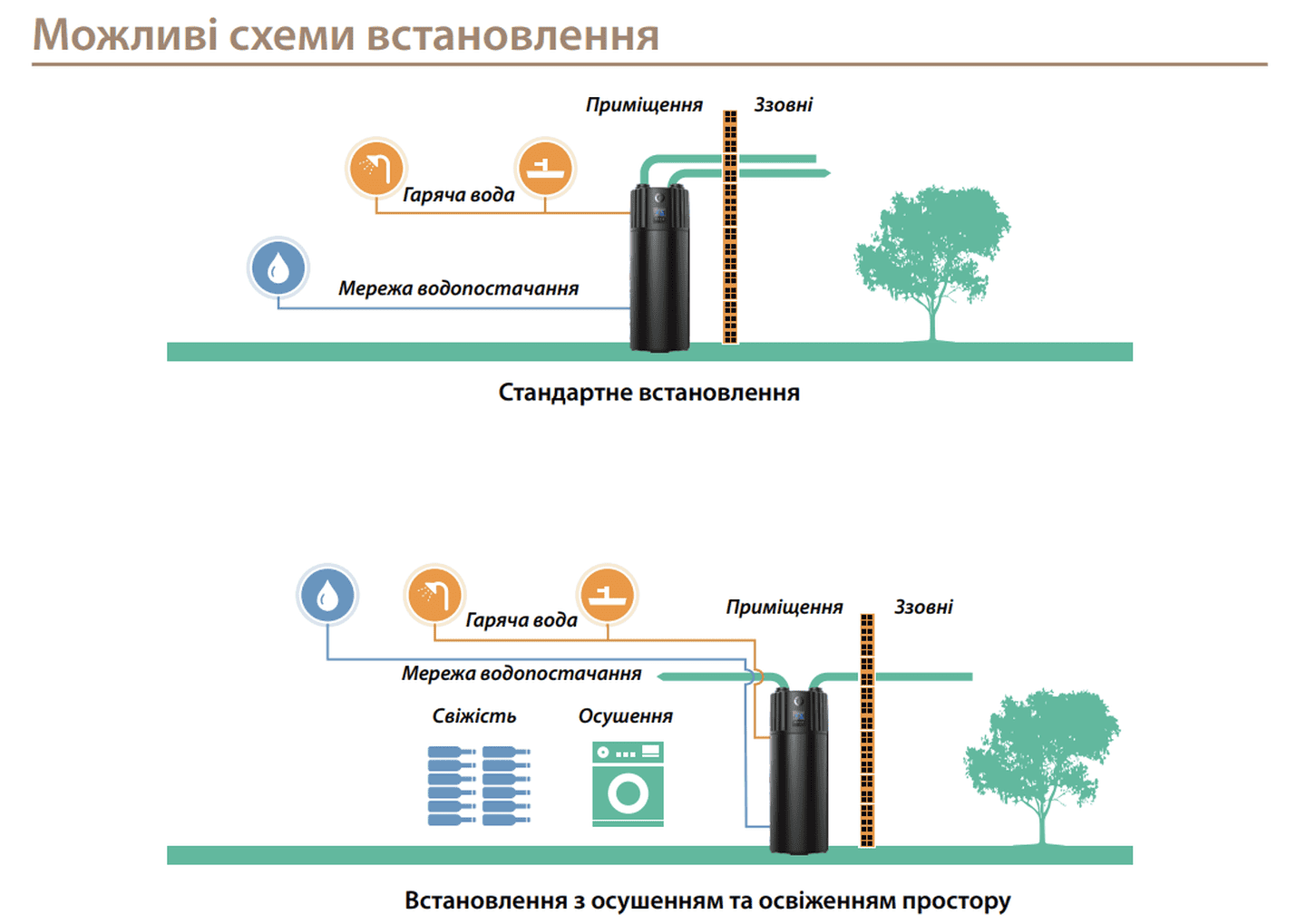 ТИП ПРИЛАДУ: тепловий насос з вбудованим баком ГВП