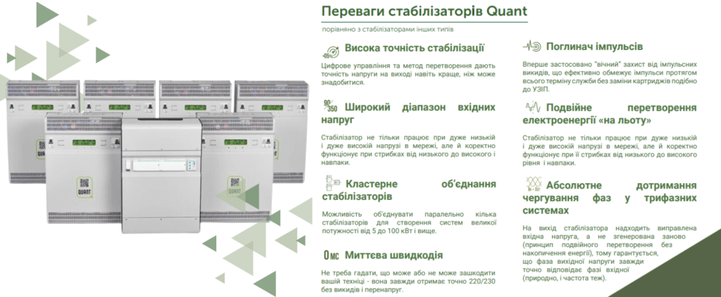 Стабілізатор QUANT є надійним рішенням для забезпечення стабільного електроживлення, запобігаючи пошкодженням електроніки та забезпечуючи безперебійну роботу підключених пристроїв.