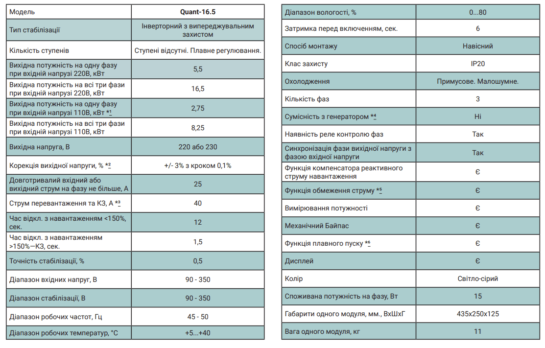 • Більшість небезпечних ситуацій вирішується без відключення стабілізатора, подаючи на навантаження чисту, відфільтровану напругу на фазу 220В (230В), 50Гц, і споживач не помітить проблем, які могли б становити небезпеку для його електротехніки.