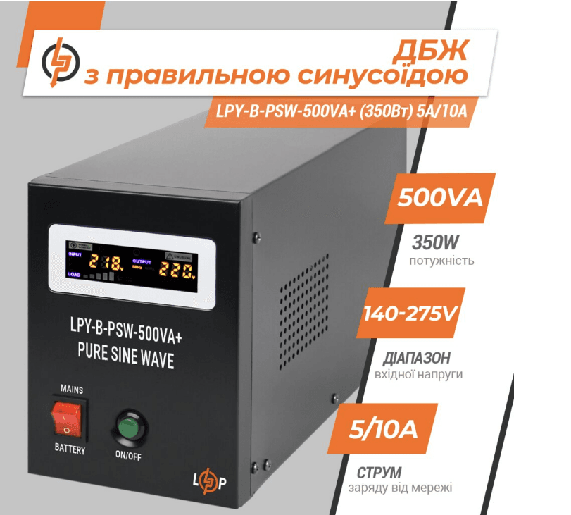 ДБЖ з правильною синусоїдою Logic Power 12V LPY-B-PSW-500VA+ (350Вт) 5A/10A