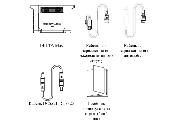 — Заряджаючи разом DELTA Max та його додаткову батарею, ви можете досягти максимальної швидкості зарядки 3600 Вт, комбінуючи будь-які два способи змінного струму, сонячного та інтелектуального генератора. Один блок DELTA Max можна заряджати від стандартних настінних розеток (макс. 1800 Вт) або комбінувати зарядку від змінного струму та сонячної батареї, щоб досягти максимальної швидкості зарядки 2000 Вт.