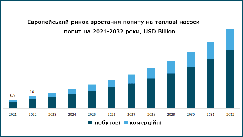 2. Розвиток ринку теплових насосів повітря-вода в Європі
