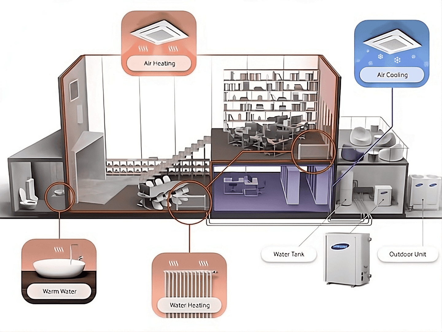 ПРЕДНАЗНАЧЕНИЕ: Комплект теплового насоса Samsung на базе DVM S2 для отопления, охлаждения и ГВС