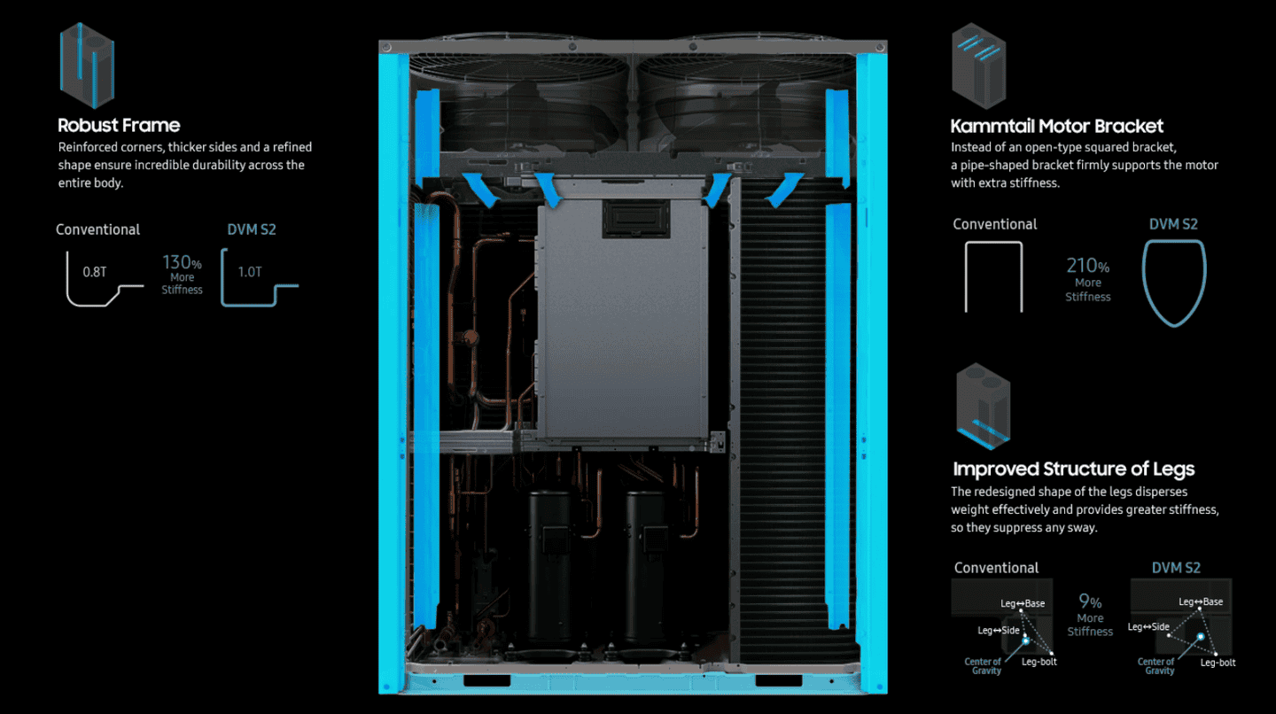 Прочная рама для предотвращения повреждений в тепловом насосе Samsung DVM S2: