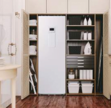 Компактный и модульный бак, интегрированный в гидромодуль, объединяет комплект управления, большой бак горячей воды на 260 литров и части водопроводных труб. Поскольку все установлено в одном месте, это дает вам больше свободы в выборе места, даже на кухне или в подсобном помещении.