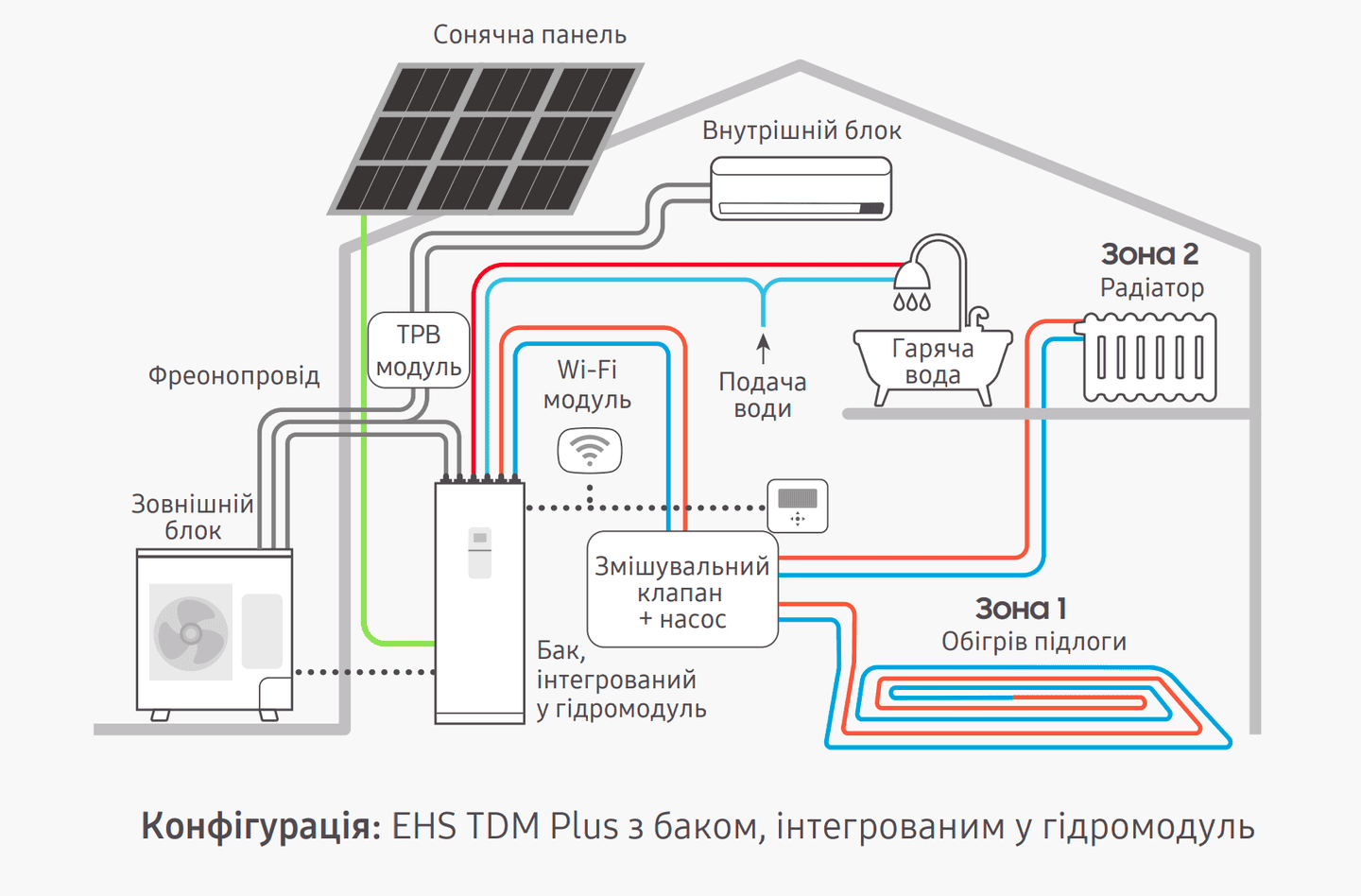 EHS TDM Plus обеспечивает обогрев помещений и горячее водоснабжение, а также кондиционирование воздуха, используя только один внешний блок. Это освобождает ценное пространство и снижает расходы.