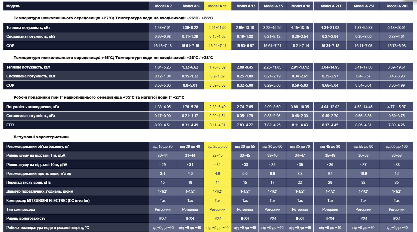 Характеристики теплового насоса Aquajoy Model A 11: