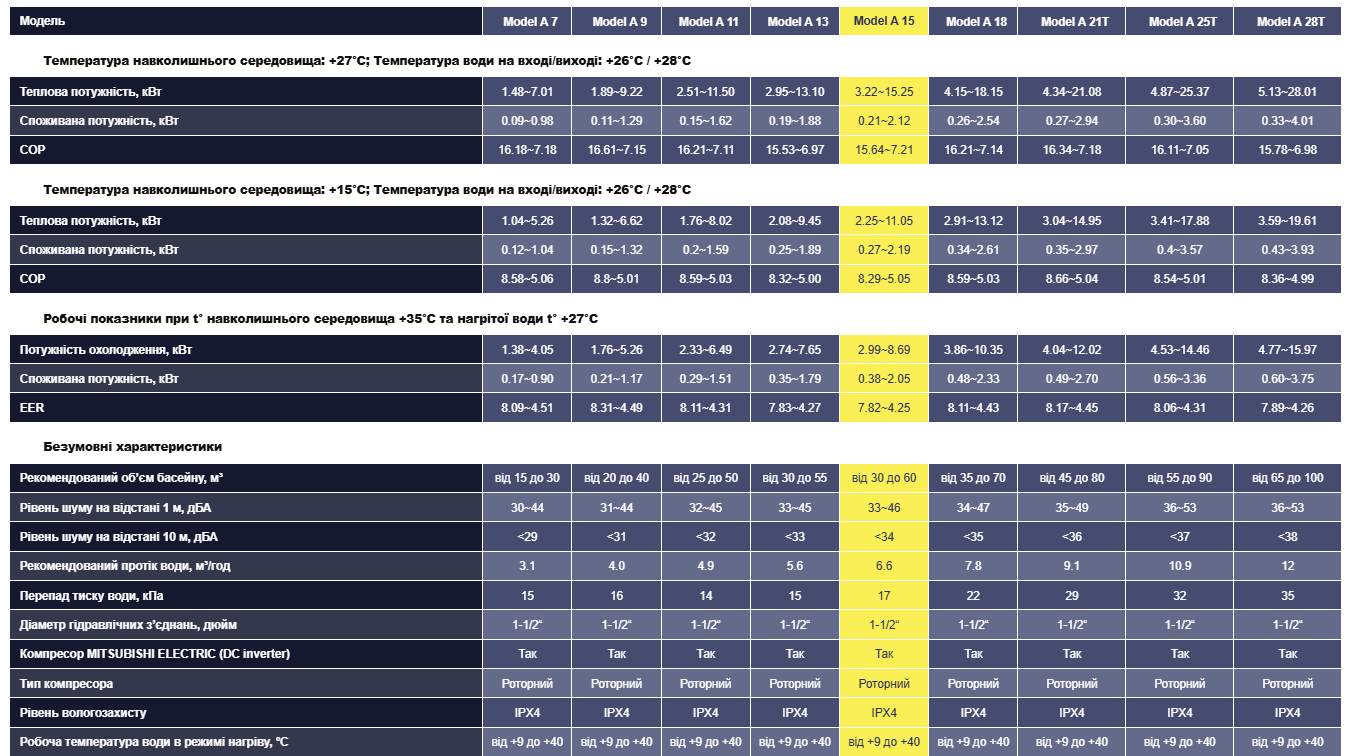 НАЗНАЧЕНИЕ: инверторный тепловой насос Aquaviva Model А 15 для бассейна