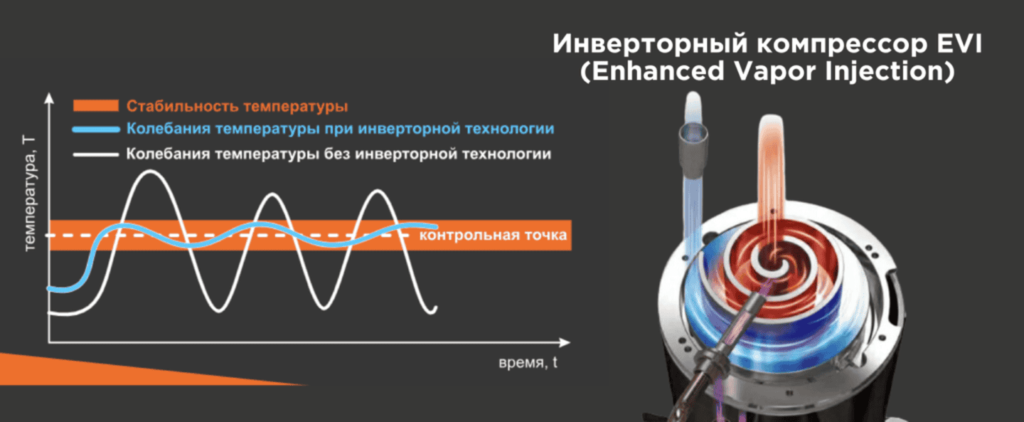 Насосы Aquaviva AVH оснащены компрессором нового поколения с системой улучшенного впрыска пара EVI (Enhanced Vapour Injection).