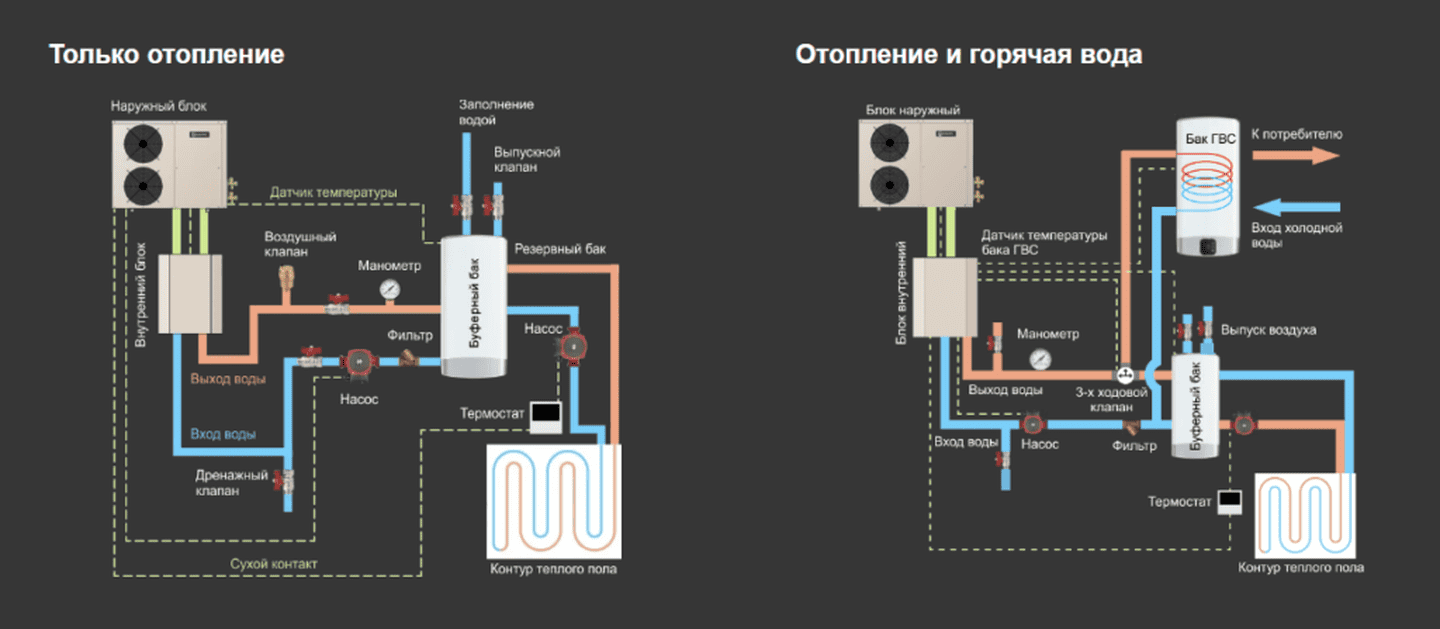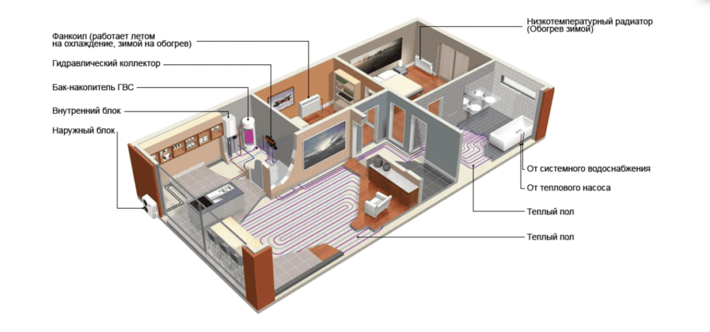 обогрев дома, охлаждение, ГВС