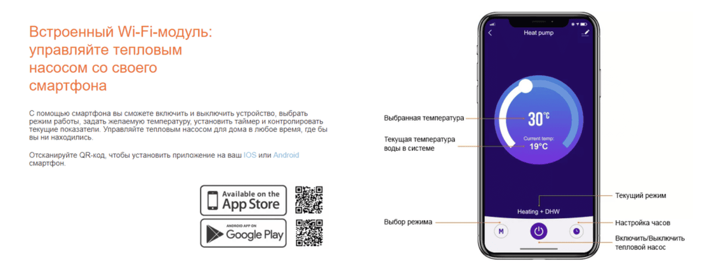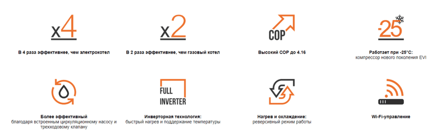 • Температура нагрева воды: до +55°C даже при -25°C на улице
