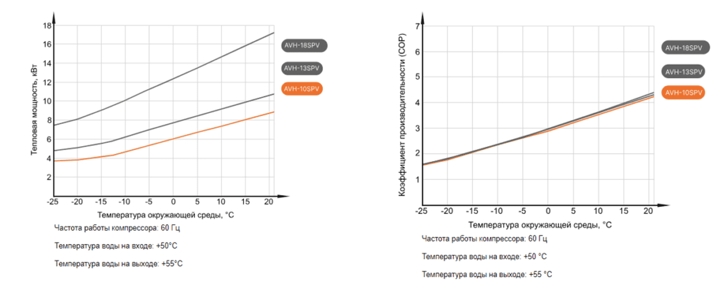 • Высокая производительность: Даже при низких температурах снаружи, система поддерживает эффективное отопление и нагрев воды.