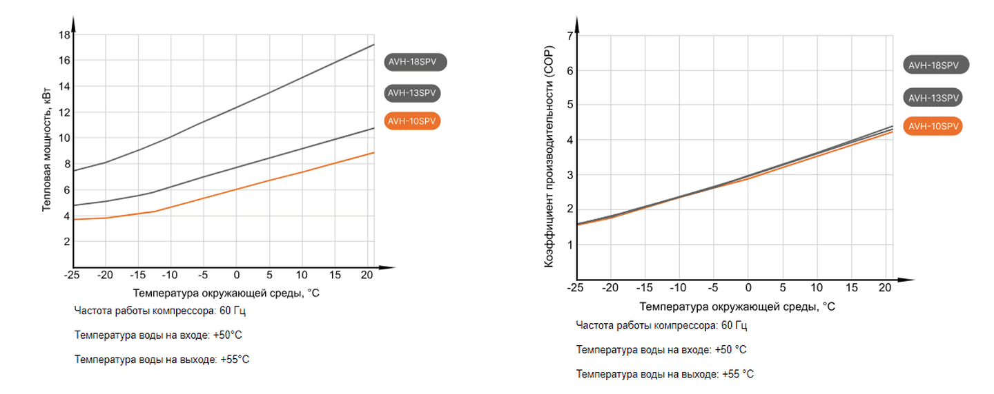 • Высокая производительность: Даже при низких температурах снаружи, система поддерживает эффективное отопление и нагрев воды.