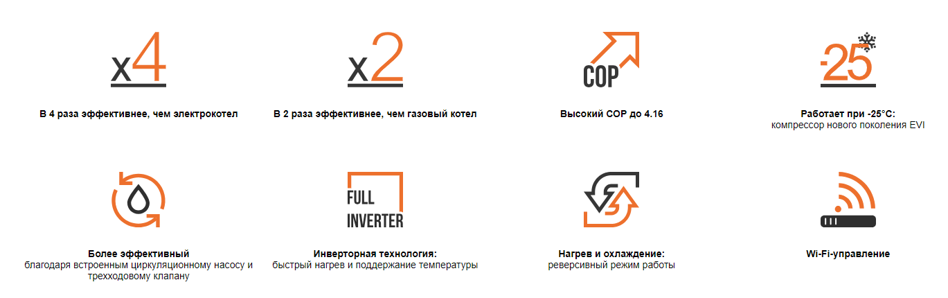 • Температура нагрева воды: до +55°C даже при -25°C на улице