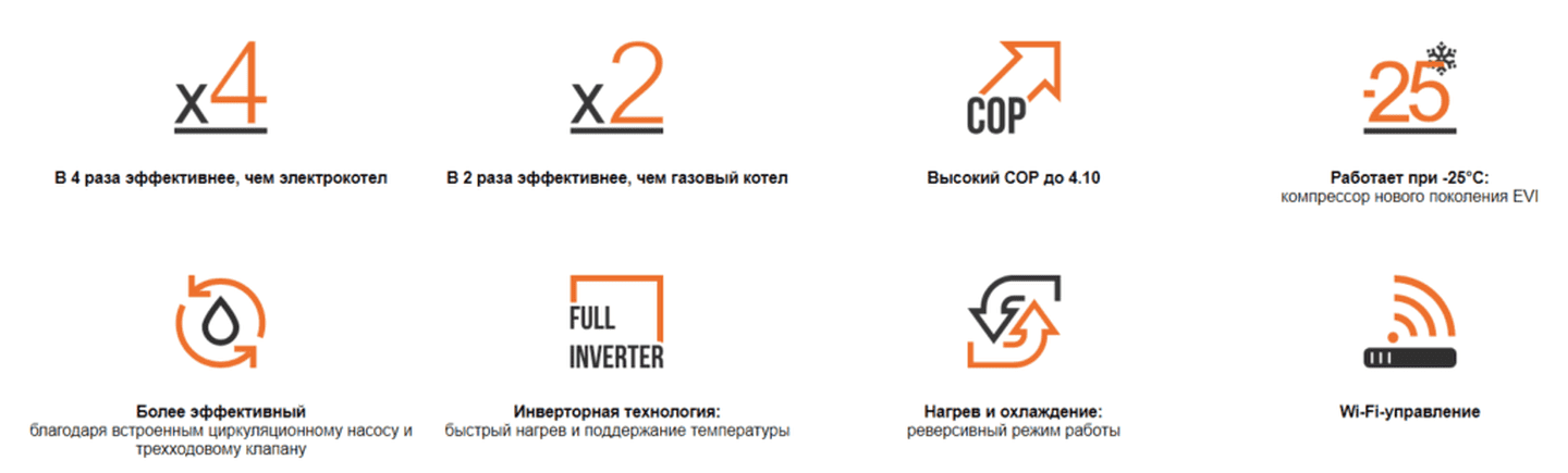 - Температура нагрева воды: до +55°C даже при -25°C на улице