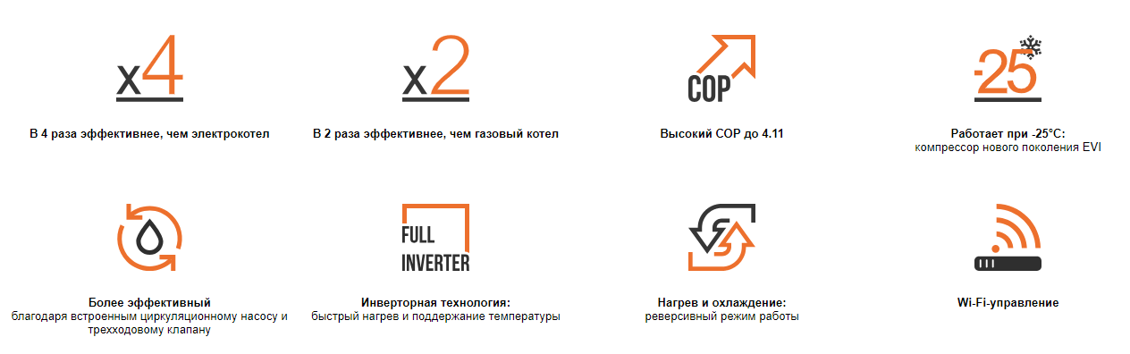 • Температура нагрева воды: до +55°C даже при -25°C на улице