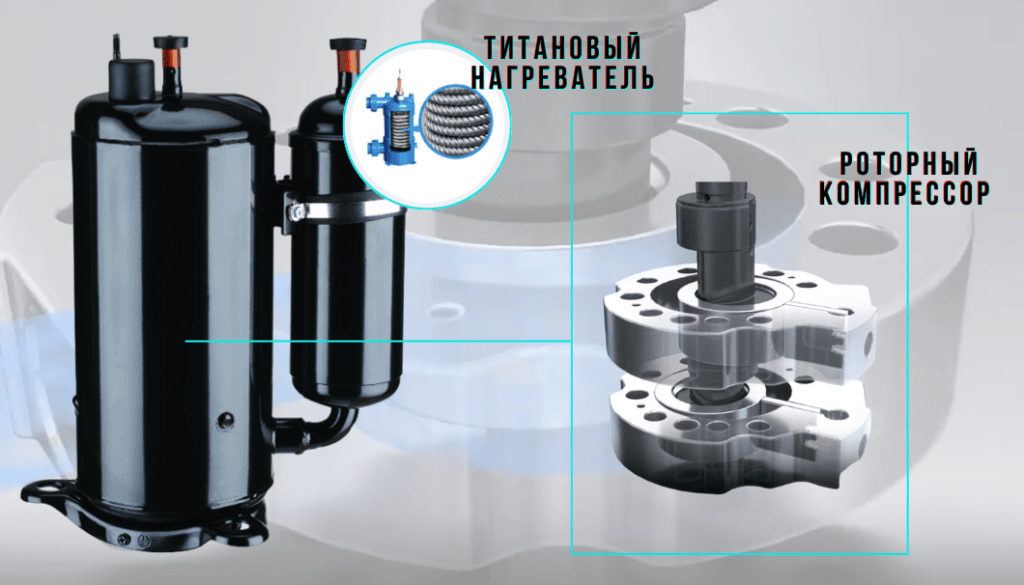 Корпус УФ-стойкого пластика: Каркас теплового насоса изготовлен из нержавеющей стали, обеспечивающей высокую прочность и устойчивость к воздействию коррозии. Этот материал обеспечивает надежную защиту от внешних воздействий и обеспечивает долговечность работы агрегата. В дополнение к нержавеющей стали, кожух  корпуса изготовлен из УФ-стойкого пластика, который защищает агрегат от воздействия ультрафиолетовых лучей. Это обеспечивает долговечность и сохраняет внешний вид теплового насоса на протяжении всего срока эксплуатации.