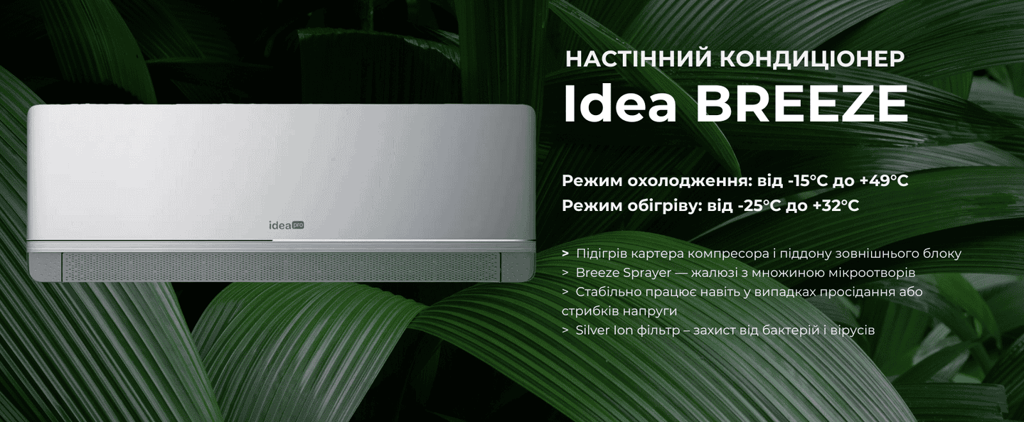 Кондиционер Idea BREEZE — это современная климатическая система, которая сочетает в себе инновационные технологии охлаждения, обогрева и очистки воздуха. Устройство разработано для комфортного использования в любое время года: летом оно обеспечит приятную прохладу, а зимой — надёжное тепло благодаря тепловому насосу, способному работать даже при температуре до -25 °C.