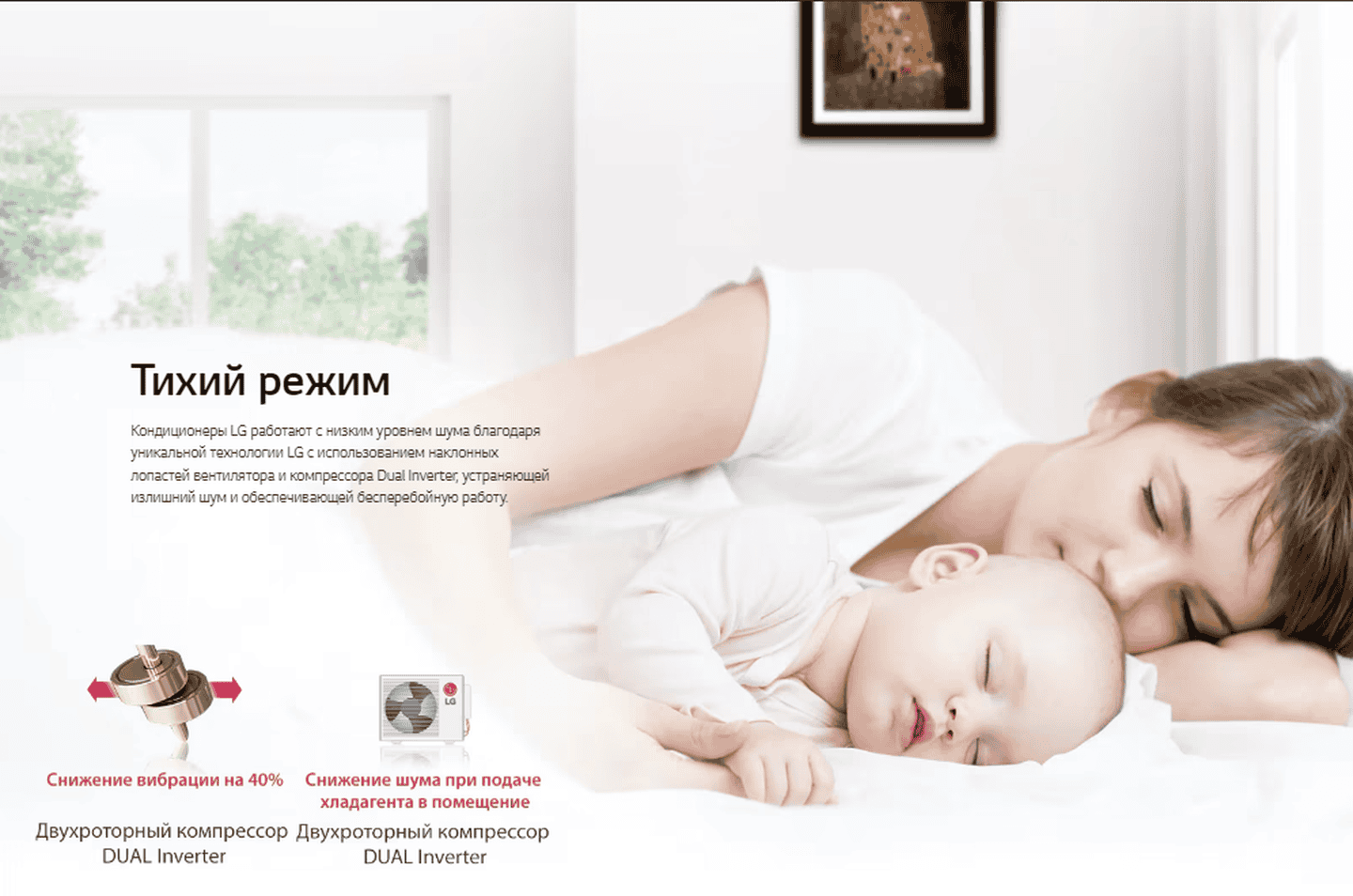 DUAL Inverter Compressor — это одна из ключевых инновационных технологий LG, обеспечивающая эффективность, экономию энергии и долговечность в работе кондиционеров.