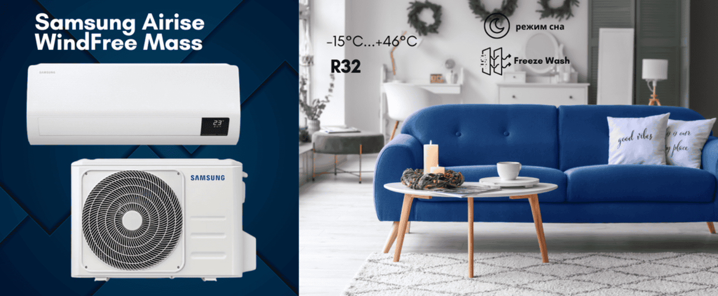 Кондиционер Samsung Airise WindFree Mass — это современное устройство, которое сочетает высокую производительность, энергоэффективность и многочисленные функции для обеспечения вашего комфорта в любое время года. Его технологические инновации и удобные опции делают его идеальным выбором для создания идеального микроклимата в вашем помещении.