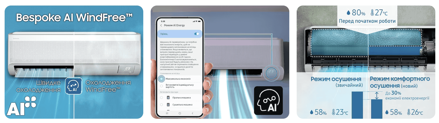 Используя искусственный интеллект для анализа привычек пользователя и внешних факторов, режим AI Energy предотвращает резкие остановки и скачки активности компрессора, уменьшая потребление электроэнергии до 30%*.