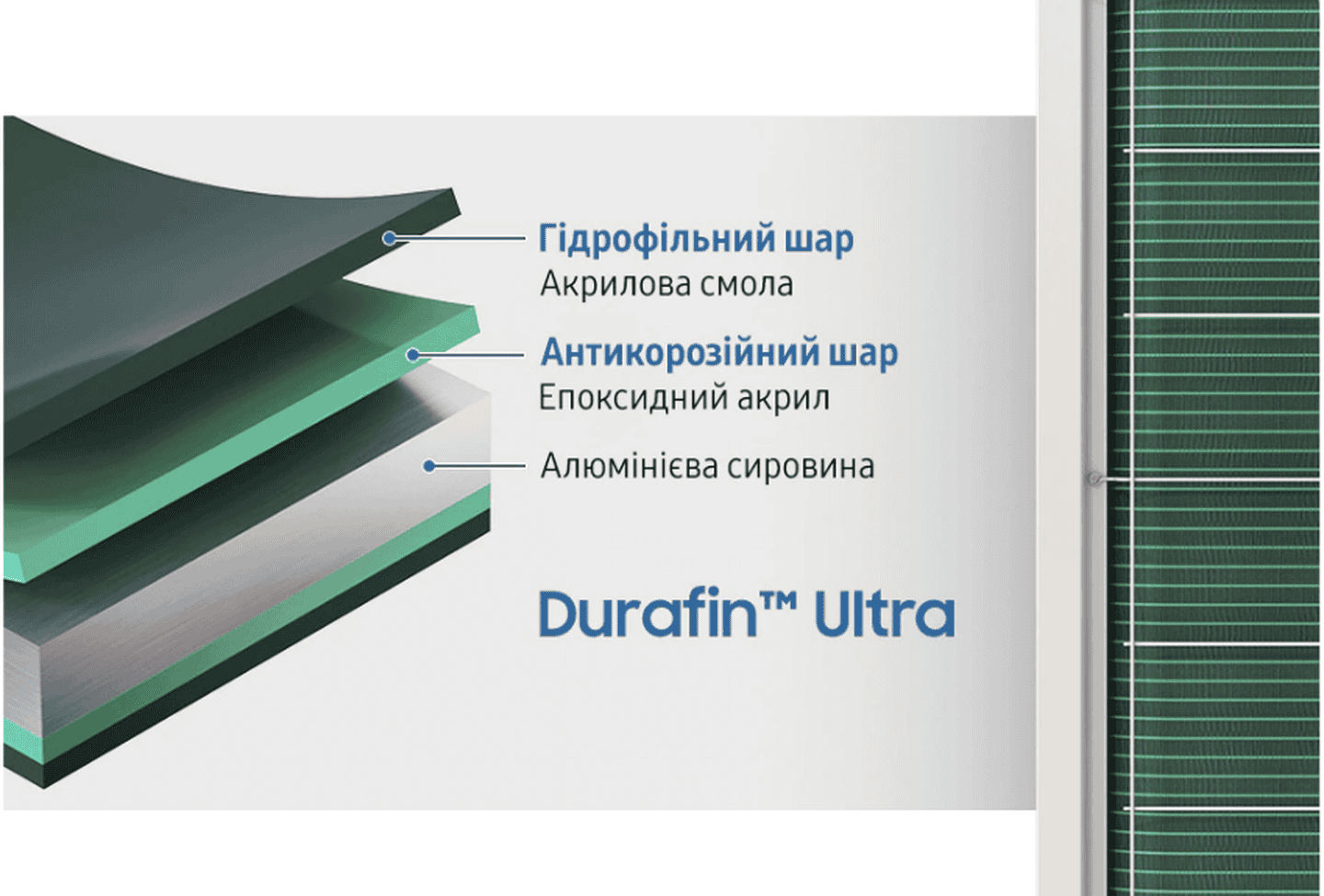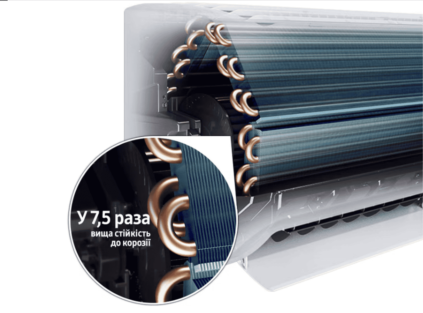 Антикоррозийное и гидрофильное покрытие предотвращает образование ржавчины. Прошел тестирование в соляном тумане (SST) — 3 000 часов без утечки хладагента.