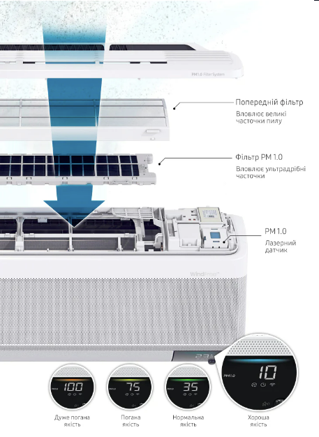 Фильтр PM 1.0 нейтрализует более 99 % бактерий*, задерживаемых поверхностью фильтра. Он работает вдвое эффективнее, чем фильтр PM 2.5**. Кроме того, цветные индикаторы отображают текущее качество воздуха. А моющийся фильтр способствует экономичности обслуживания.