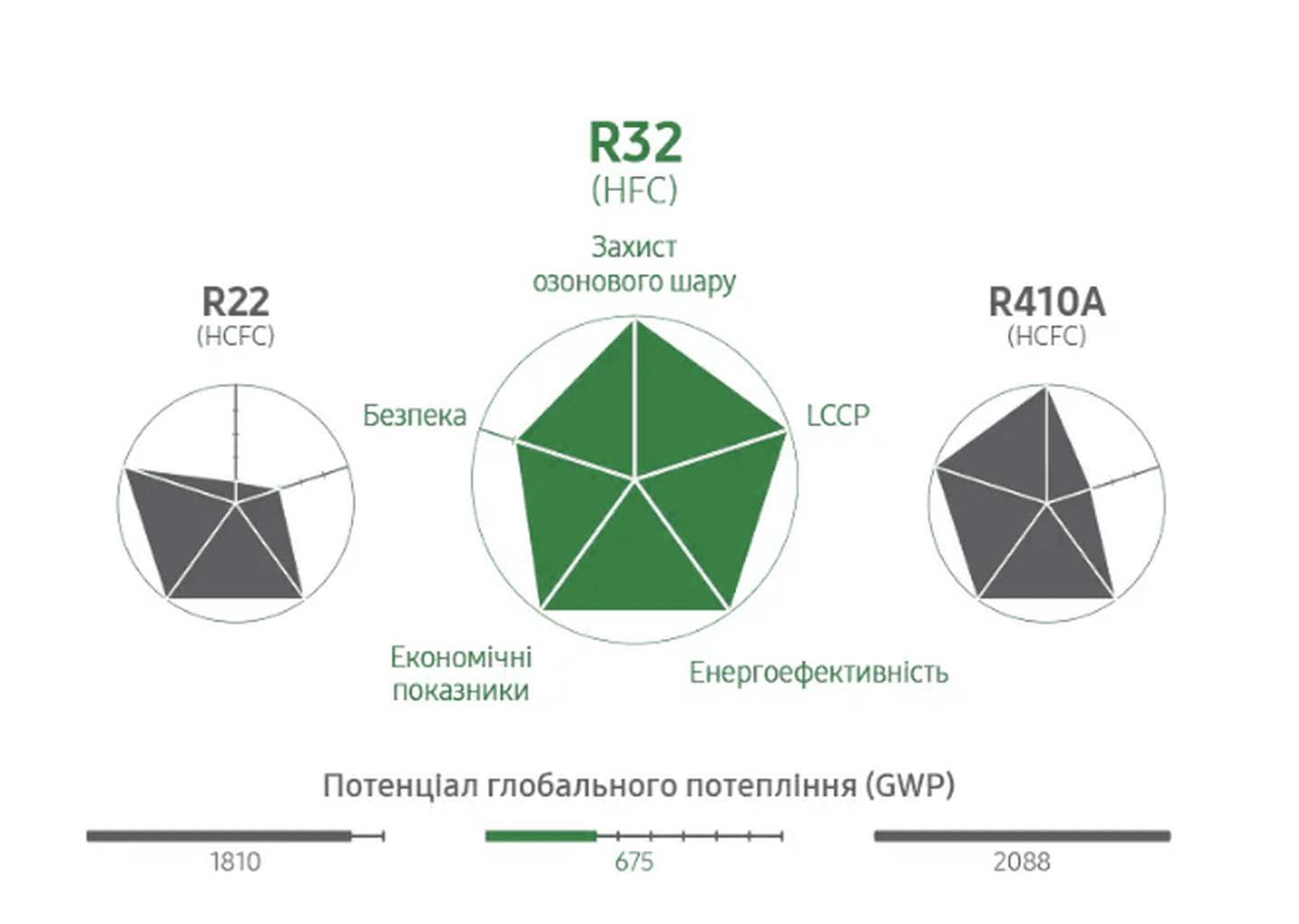 Экологически чистый хладагент R32: Кондиционер использует экологически чистый хладагент R32, который способствует сохранению озонового слоя и имеет низкое влияние на глобальное потепление по сравнению с обычными хладагентами R22 или R410A.