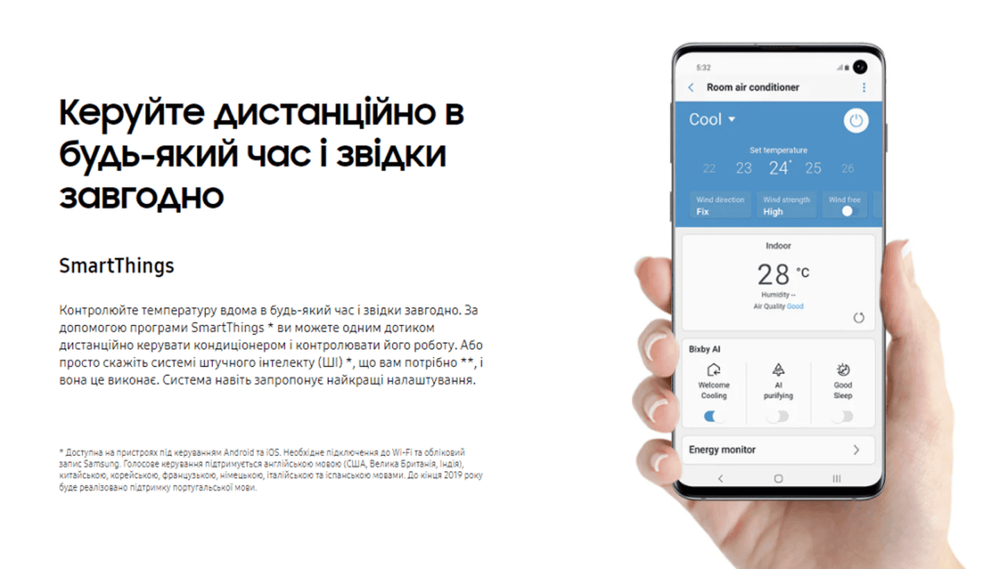 Кондиционер Elite WindFree можно легко контролировать с помощью приложения SmartThings, доступного на устройствах Android и iOS. Это позволяет пользователям дистанционно управлять кондиционером из любого места, имея подключение к Wi-Fi и учетную запись Samsung. У вас есть возможность настроить желаемую температуру, включить или выключить устройство, а также настроить другие параметры кондиционера.