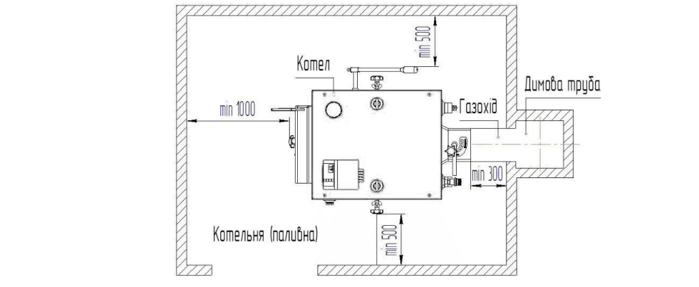 При установке котла следует обеспечить доступ для загрузки топлива, чистки топки и доступа к вентилятору. Не допускается установка котла во влажных помещениях, поскольку это ускоряет коррозию.