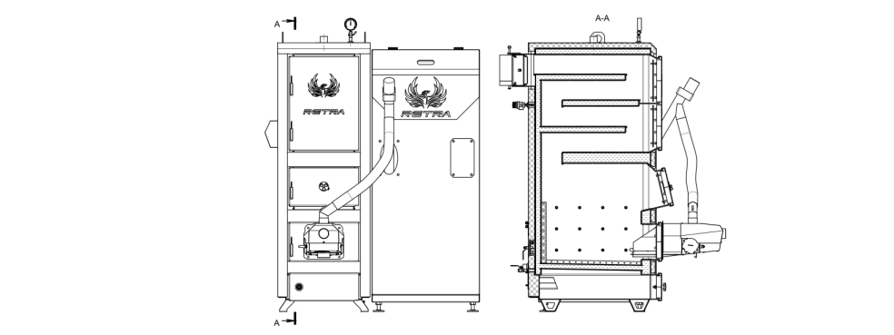 Твердотопливные котлы Retra-5М Combi предназначены для бытового использования и работают по принципу верхнего сжигания топлива. Стенки и колосниковая решетка котлов охлаждаются водой и изготовлены из высококачественного стального листа 3 мм. Оборудован пеллетной горелкой (факельной) и системой подачи топлива с бункером, работой котла управляет микропроцессор, подача топлива происходит автоматически (основной режим). Котлы модельного ряда Ретра-5М Combi также работают в режиме ручной загрузки топлива (резервный режим).