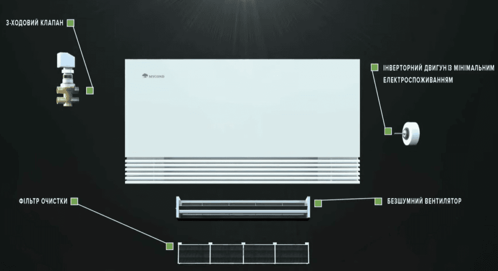 ПРЕДНАЗНАЧЕНИЕ: Напольный фанкойл Mycond Silent охлаждения и обогрева помещений