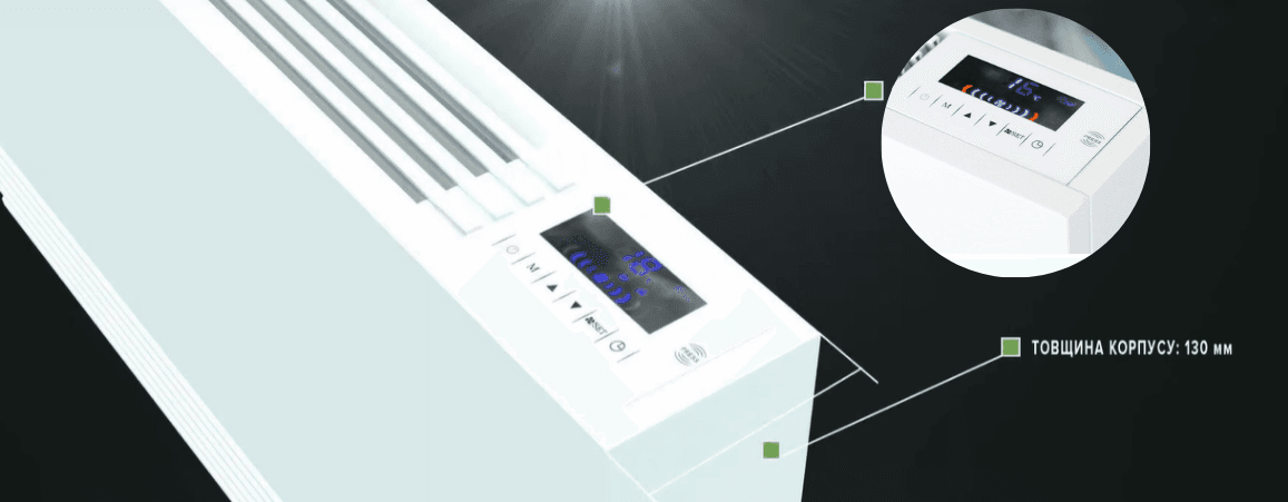 Управление фанкойлом можно осуществлять через сенсорную панель управления с LED-дисплеем или с помощью Wi-Fi, что обеспечивает максимальный комфорт пользователя.