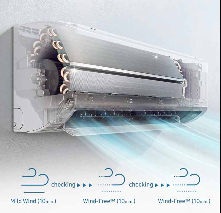 Samsung AE028TNXDEH/EU с Wind-Free™ охлаждением предоставляет передовые технологии для обеспечения комфорта в доме, обеспечивая эффективное охлаждение, минимальный уровень шума и заботу о здоровье и сне пользователей.