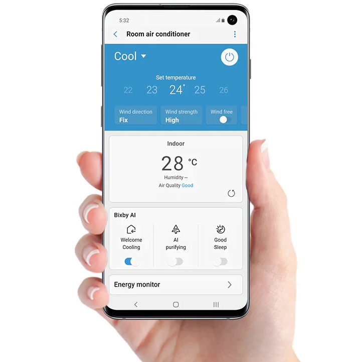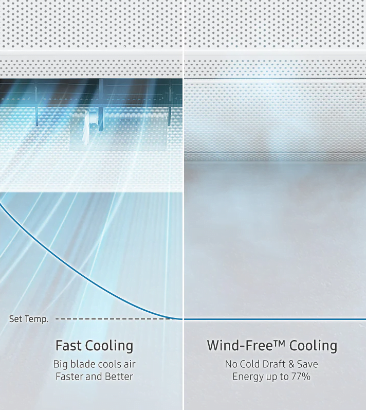 Такие технологии как Wind-Free™, обеспечивающая комфортное охлаждение без сквозняков, могут быть решающими факторами при выборе. Также стоит обратить внимание на возможность интеграции с умным домом через SmartThings.