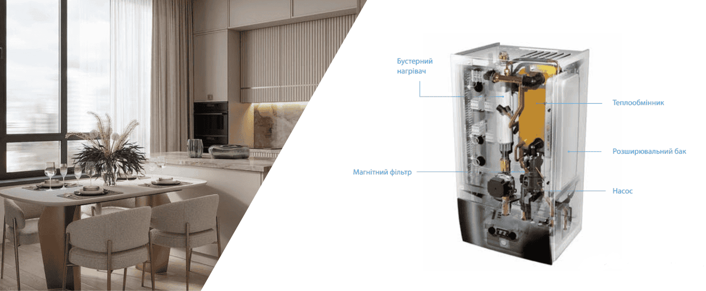 • Эффективность ГВС позволяет использовать систему для горячего водоснабжения, обеспечивая комфортную жизнь в любое время года.