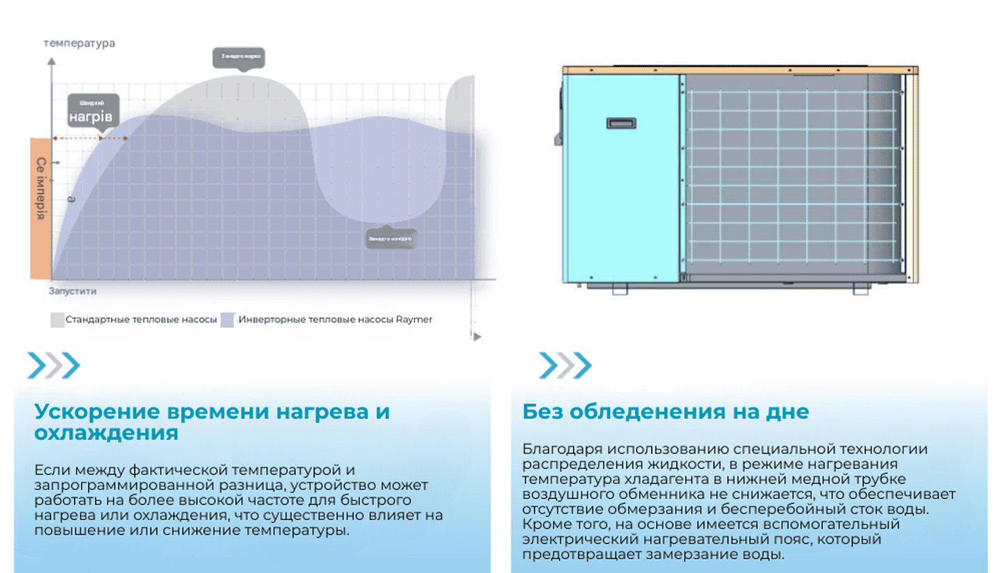 Wi-Fi управление, Высокая температура на выходе (до 60°C), Работа при -30 °C