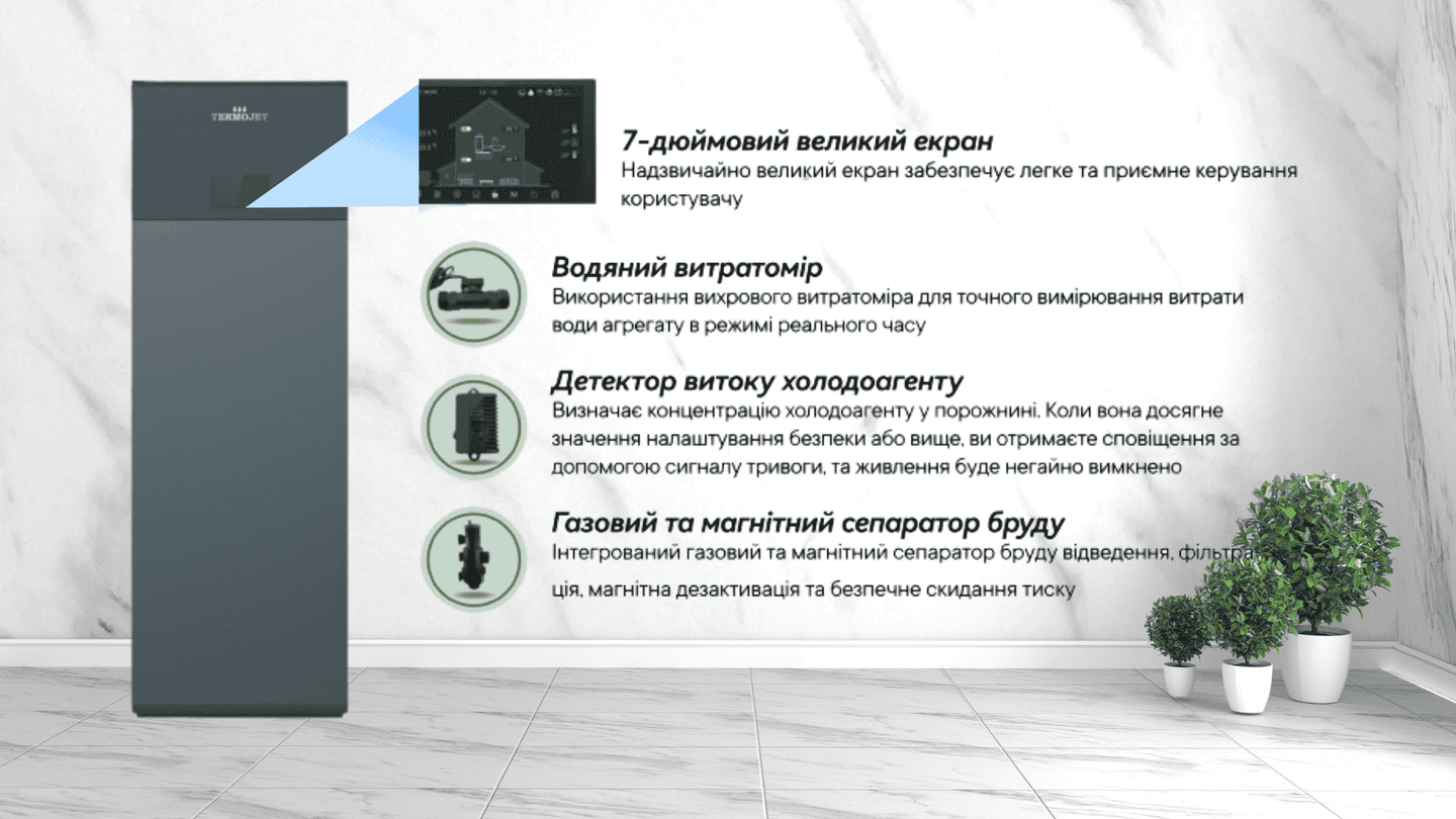 Данная комплектация подчёркивает, что тепловой насос Termojet Hi-Master V 90HCR5INVM2V — это высокотехнологичное, надёжное и безопасное устройство, созданное с учётом современных стандартов энергоэффективности и долговечности.