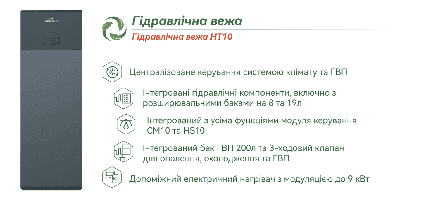 Тепловой насос Termojet Hi-Master V 90HCR5INVM2V с модулем управления HT10-1 — это современное решение для отопления, охлаждения и обеспечения горячей водой жилых домов площадью до 90 квадратных метров. Он соответствует новейшим европейским стандартам энергоэффективности и работает очень тихо, поэтому не создает дискомфорта для жильцов и соседей.