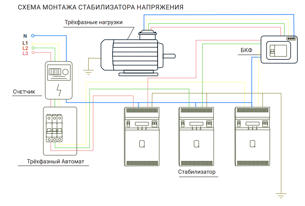 • Собственно стабилизатор: его входные и выходные фильтры, компенсатор реактивной мощности для режима нормальной работы, включая любые скачки и перепады напряжения в пределах допустимого диапазона стабилизации прибора.