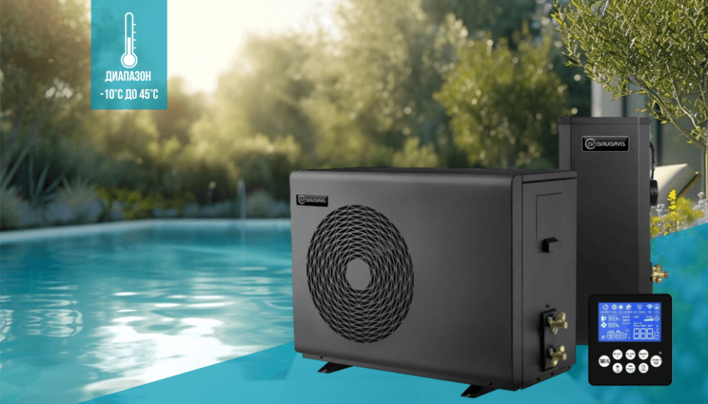 - Работа при низких температурах: Инверторная технология позволяет насосу генерировать тепло даже при отрицательных температурах. Это означает, что устройство может успешно функционировать даже в условиях зимнего холода до -10°С и летней жары до +45°С, что делает его универсальным и надежным решением для подогрева воды в бассейнах от +8 до +40°C в любое время года.
